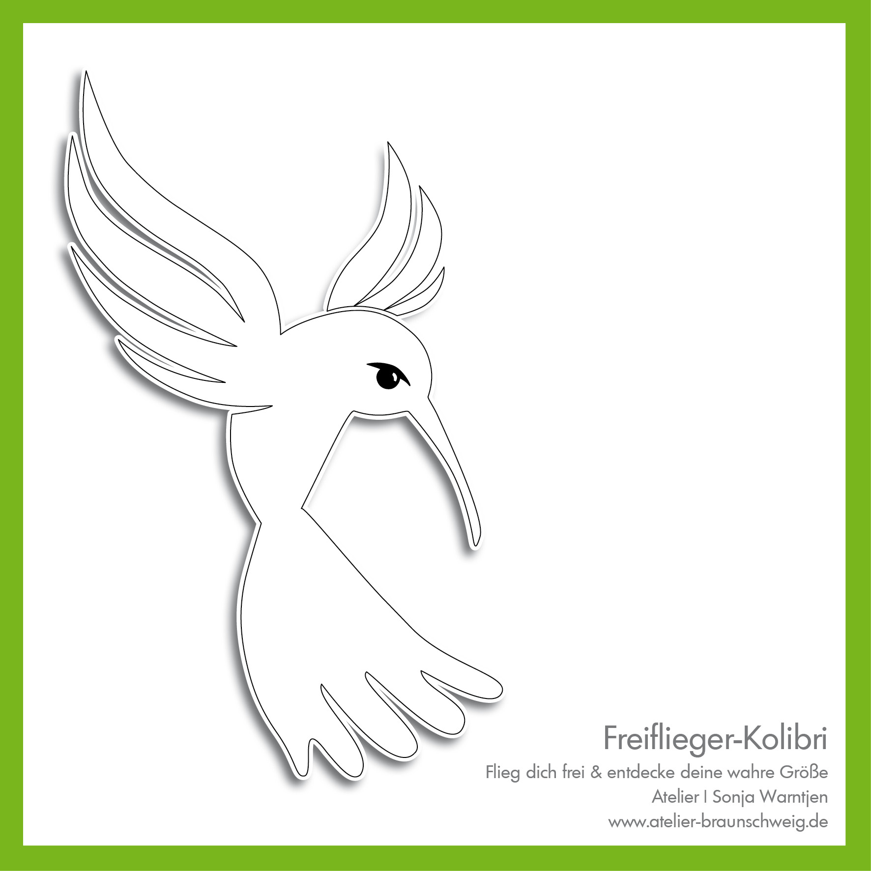 Seinen Namen „Freiflieger“ hat mein Kolibri von den Menschen geschenkt bekommen, die sich in meinem Atelier auf den Weg zu ihrer persönlichen Freiheit machen/gemacht haben.
